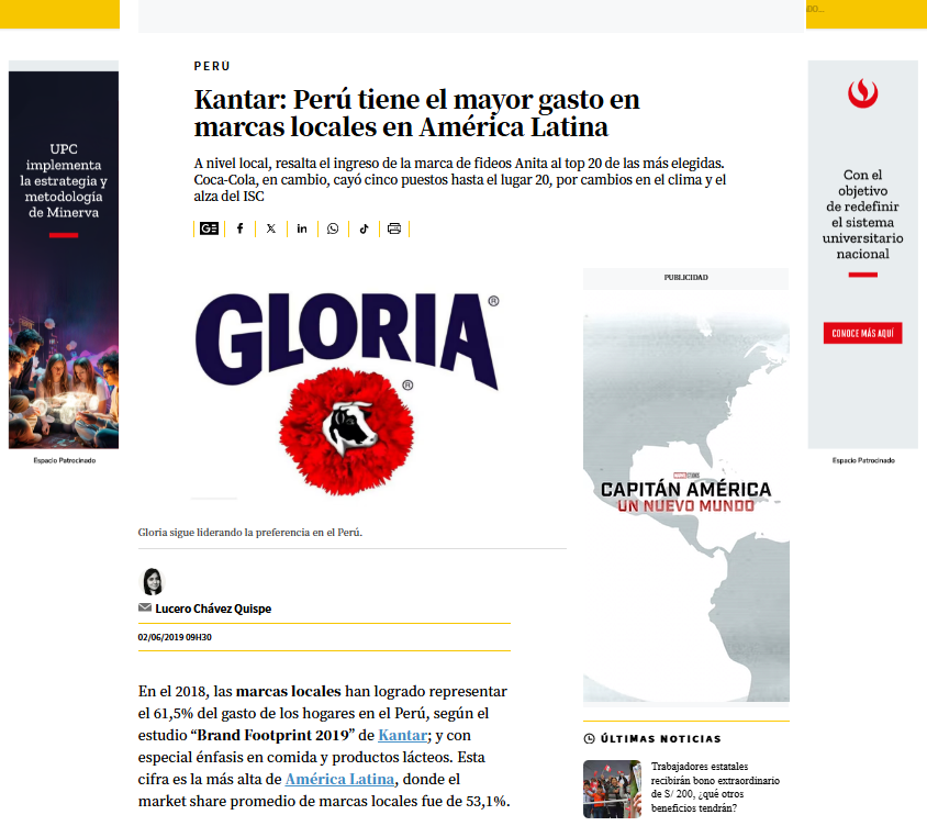 Difusión de estudio sobre marcas locales en diario El Comercio