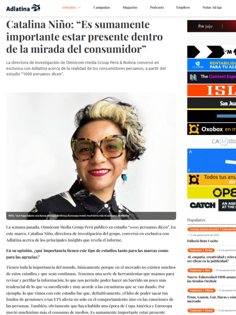 AD Latina: Entrevista a Catalina Niño, directora de investigación de OMG en AD Latina, uno de los principales medios del sector de marketing y publicidad de Latam