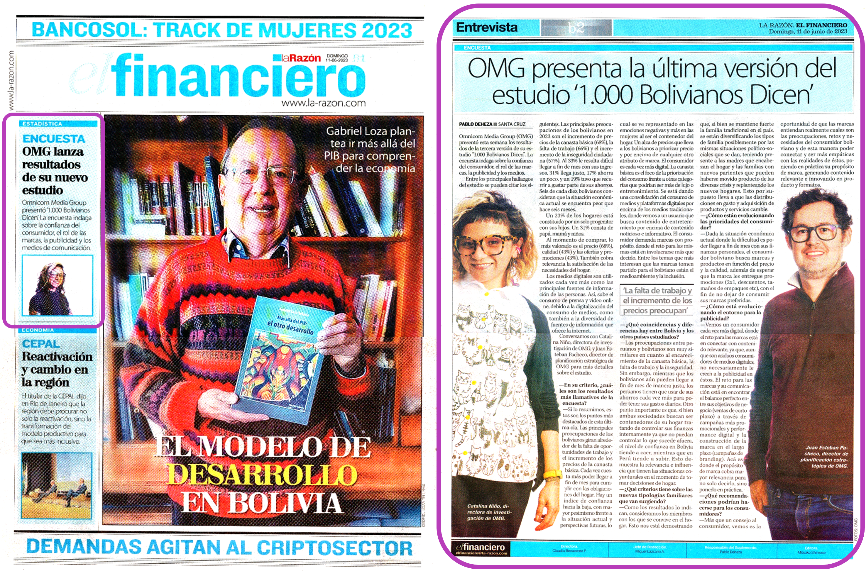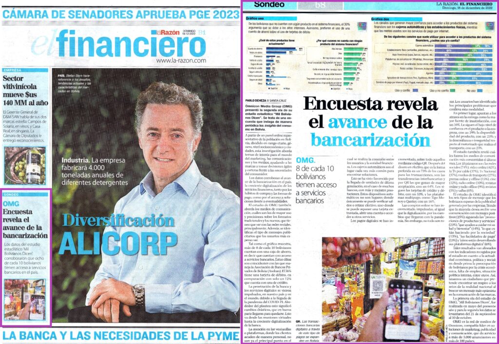 La Razón: Entrevista a voceros de Omnicom Media Group en el medio boliviano La Razón para abordar los resultados del estudio (artículo principal y mención en portada)