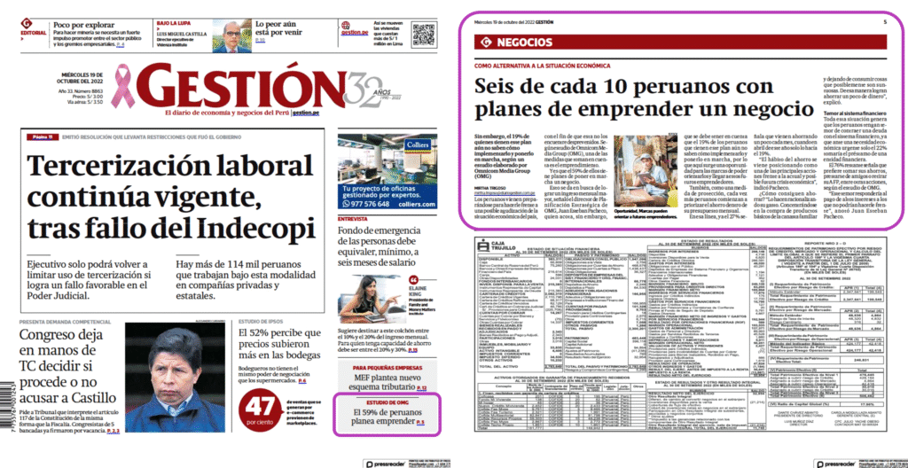Omnicom Media Group (OMG), líder global en soluciones de marketing y publicidad, buscaba posicionar sus investigaciones de consumo “1000 Peruanos Dicen” y “1000 Bolivianos Dicen” en la agenda mediática de ambos países. El objetivo era consolidar a la marca como referente en el análisis del consumidor y del mercado publicitario, generando mayor visibilidad en medios clave y fortaleciendo su reputación regional.