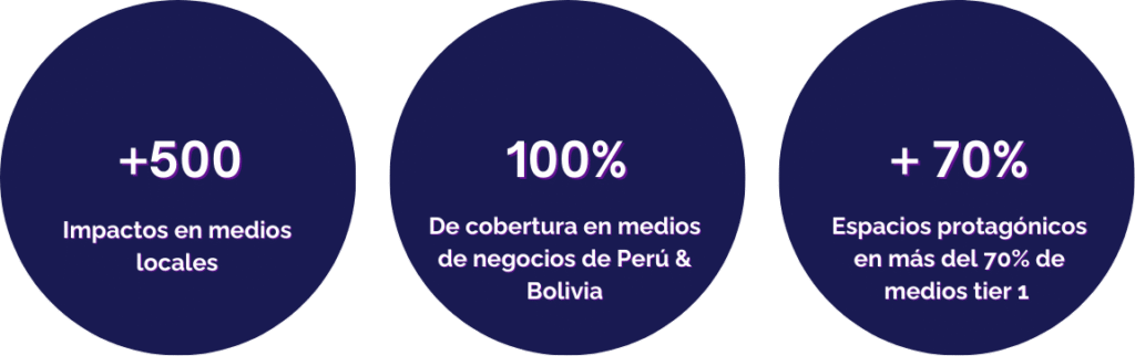 • Cobertura en el 100% de medios de negocios y marketing de Perú y Bolivia, y entre 40% y 60% de medios generales.