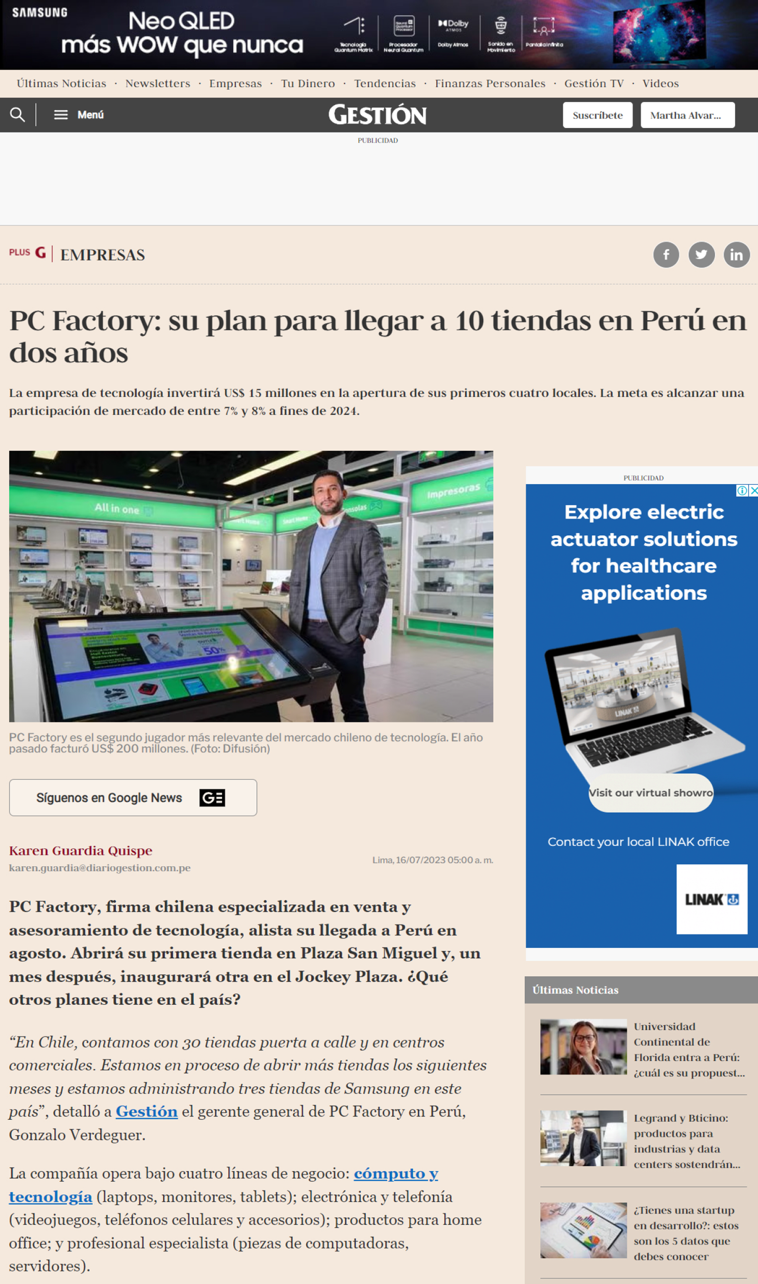 Diario Gestión: Entrevista sobre el lanzamiento de pc Factory