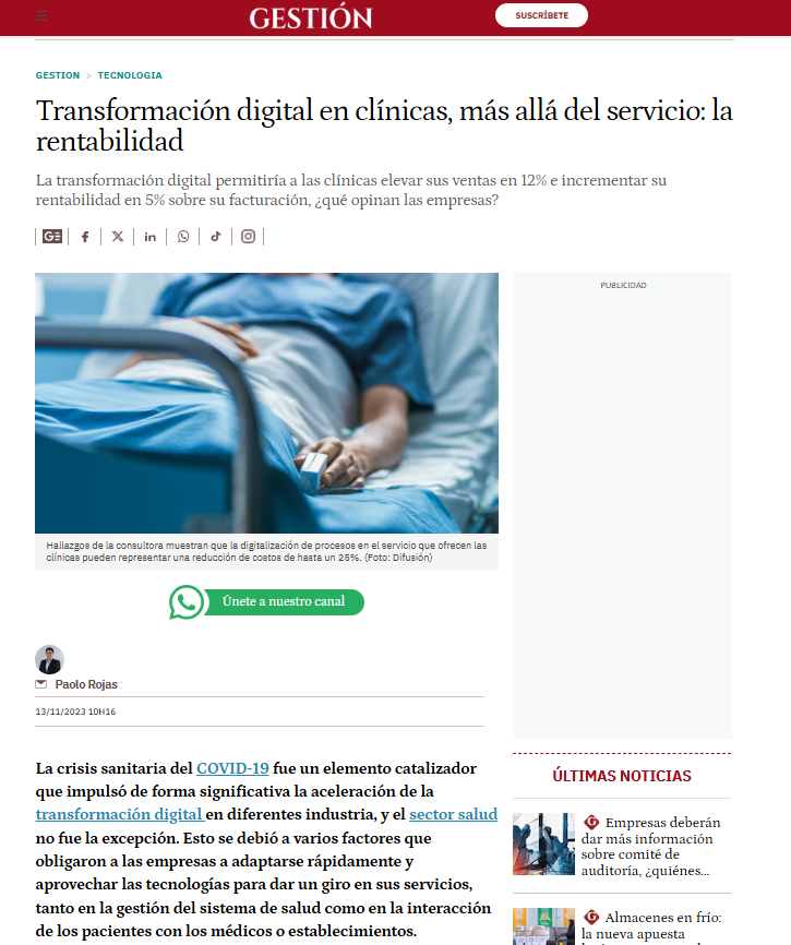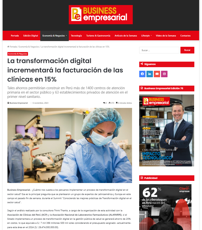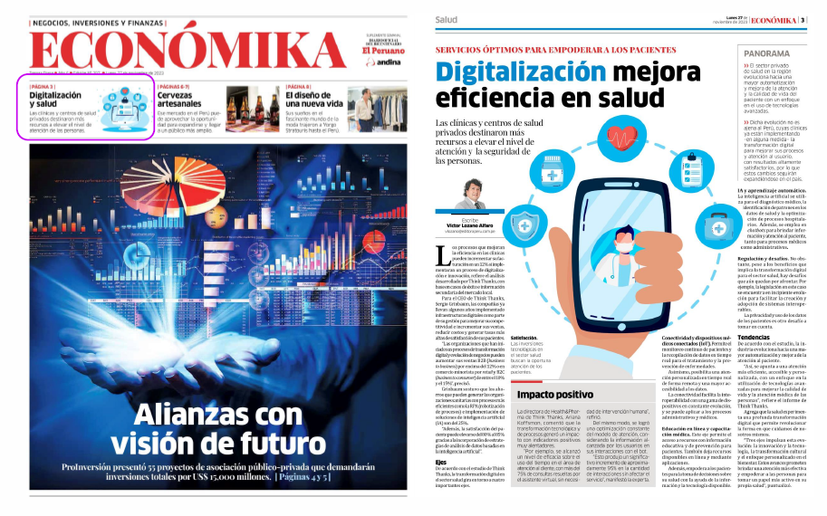Reporte: Impacto de la Transformación Digital en el sector salud peruano” de Think Thanks