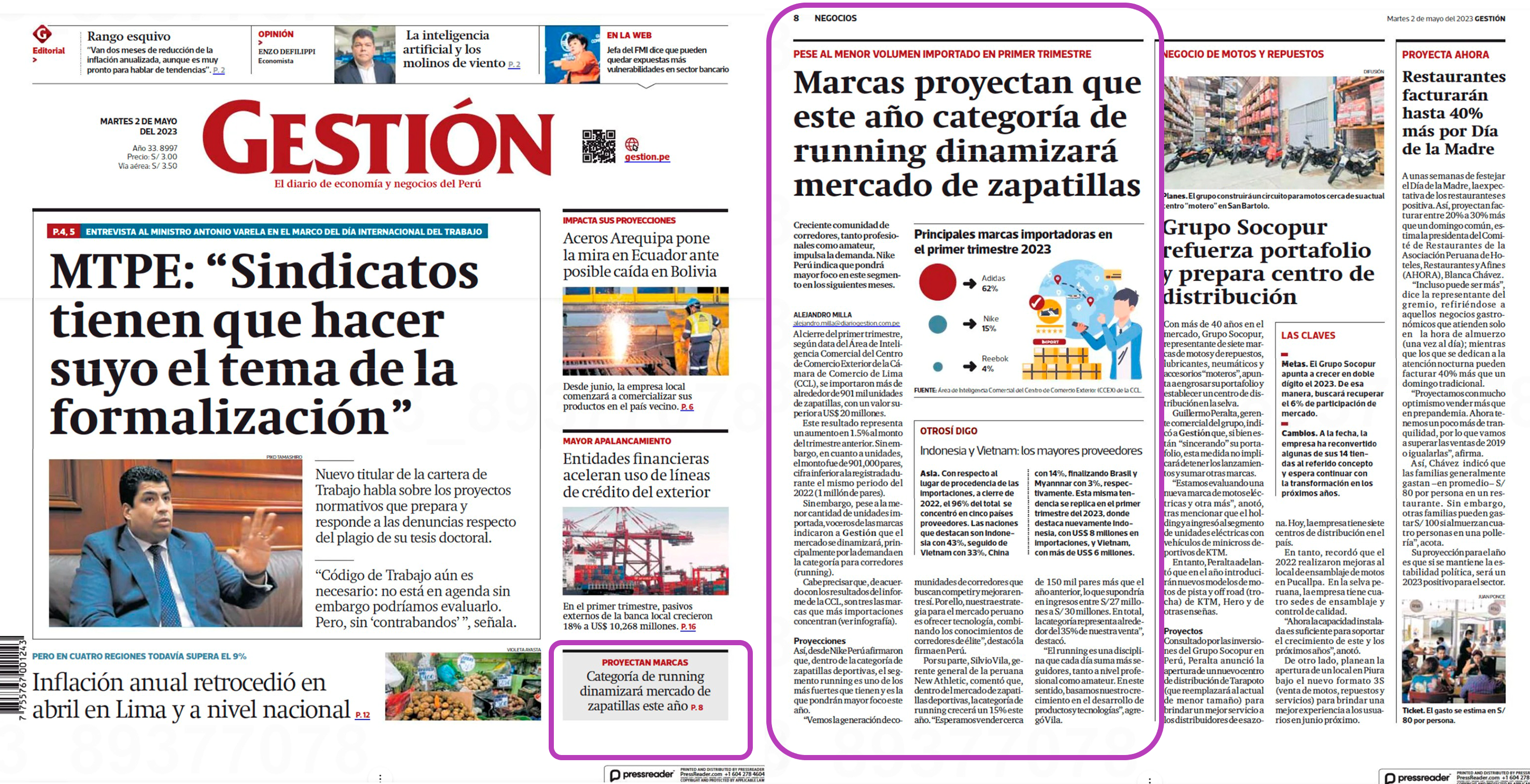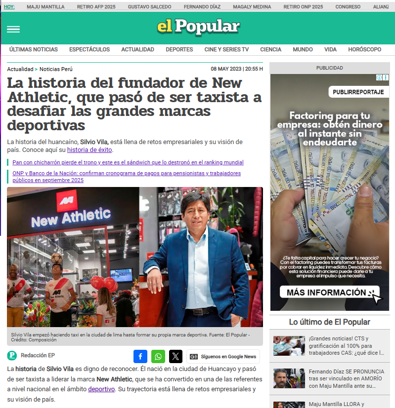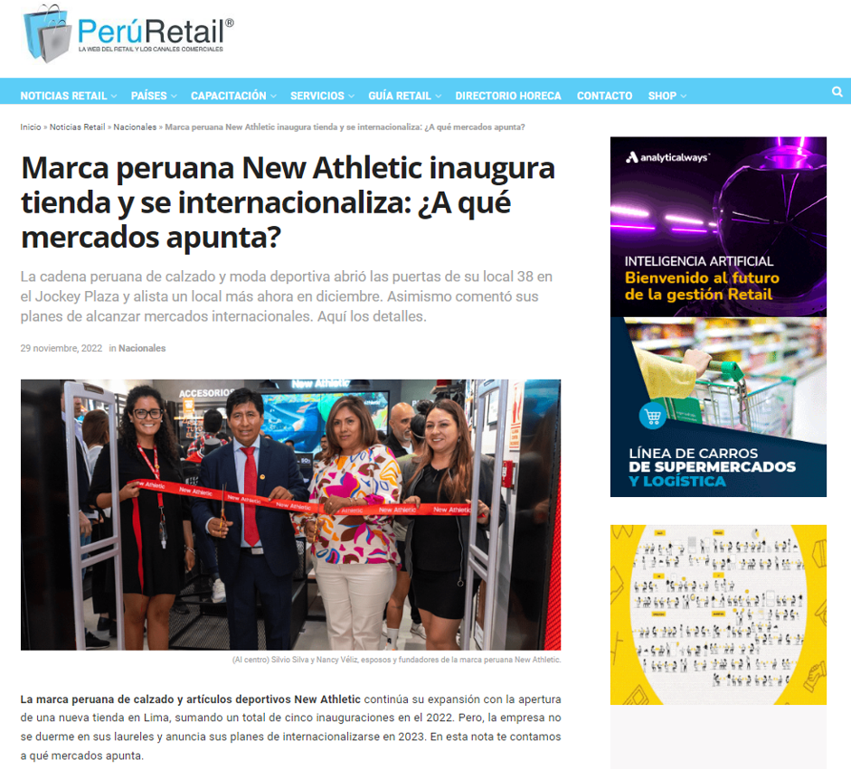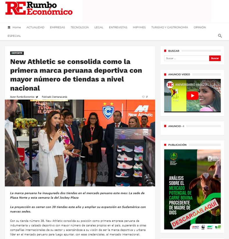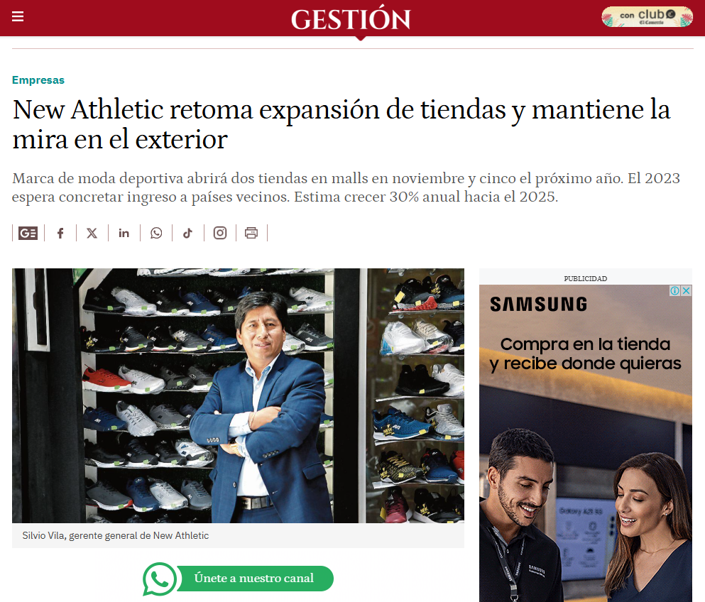 Diario Gestión: Informe sobre la expansión de New Athletic en diario Gestión