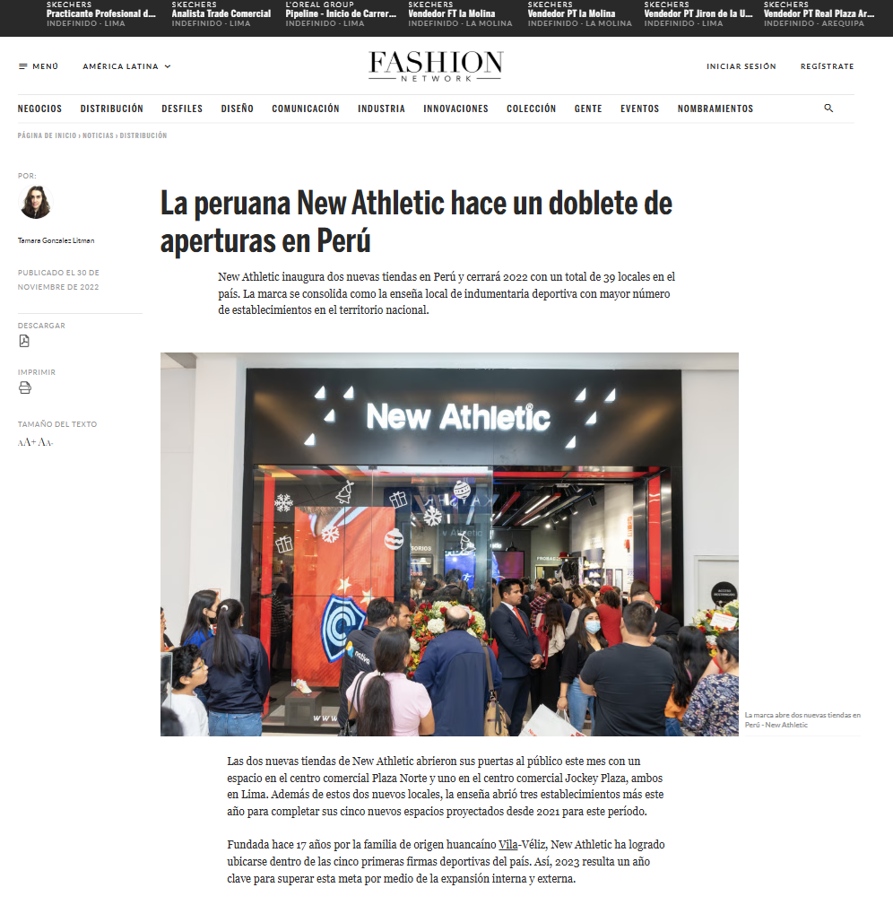 Fashion Network: Informe sobre inauguración de nuevas sedes de New Athletic en Lima.